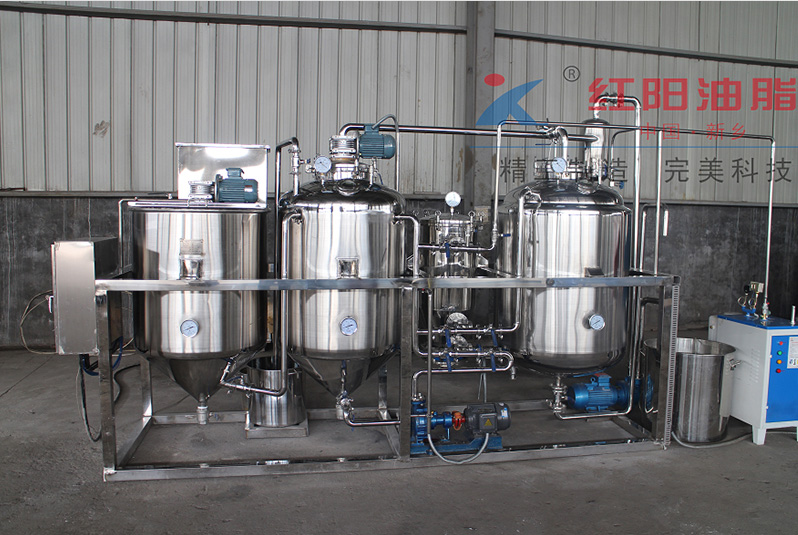 主要配套設備:中和鍋(用于酸練、堿練和水洗)、脫色鍋(用于漂白油脂及脫除色素)、脫臭鍋(用于脫去油脂臭味)、導熱油爐爐(提供生產所需熱能,溫度達到280度)、真空泵(提供脫色、脫臭所需真空)、空壓機(吹干脫色白土,壓出成品油)、過濾機(過濾白土)、蒸汽發生器(產生脫臭蒸餾所需蒸汽)。